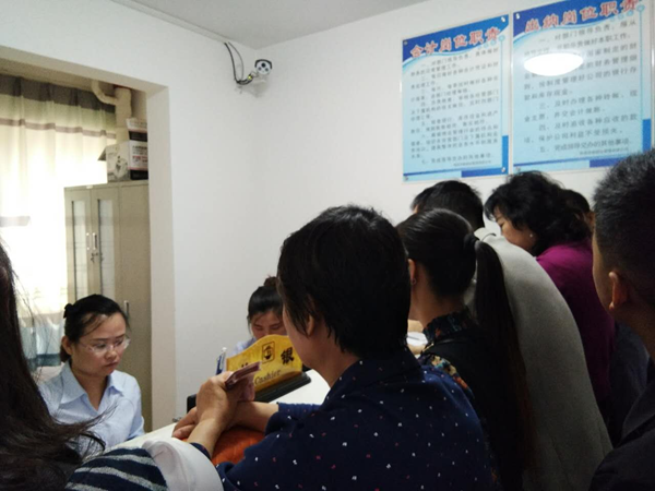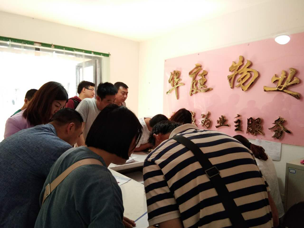 經(jīng)過各部門領(lǐng)導(dǎo)的精心帶領(lǐng)下及各單位同事的幫忙努力下一天的工作終于落幕,順利收房82戶。(圖為前臺收房及收費室) 石婷
