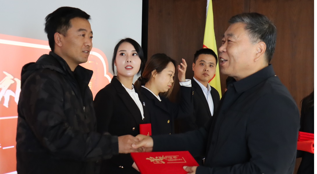 集團董事長魏進民現(xiàn)場親自給集團2021年度先進工作者,頒發(fā)了榮譽證書和獎金予以表彰。